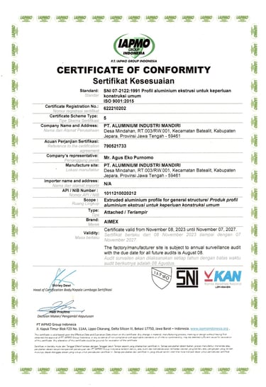 PT Aluminium Industri Mandiri merupakan salah satu anak usaha dari Mandiri Abadi Group yang bergerak dibidang ekstrusi aluminium. PT Aluminium Industri Mandiri berlokasi di Jepara, Jawa Tengah dengan merek dagang Aimex..